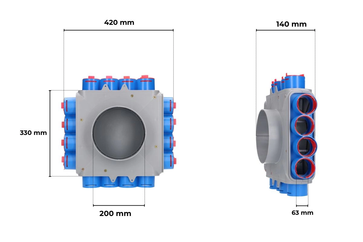 Skrzynka rozdzielcza 16x63/200 FLEX do rekuperacji – modułowy rozdzielacz powietrza