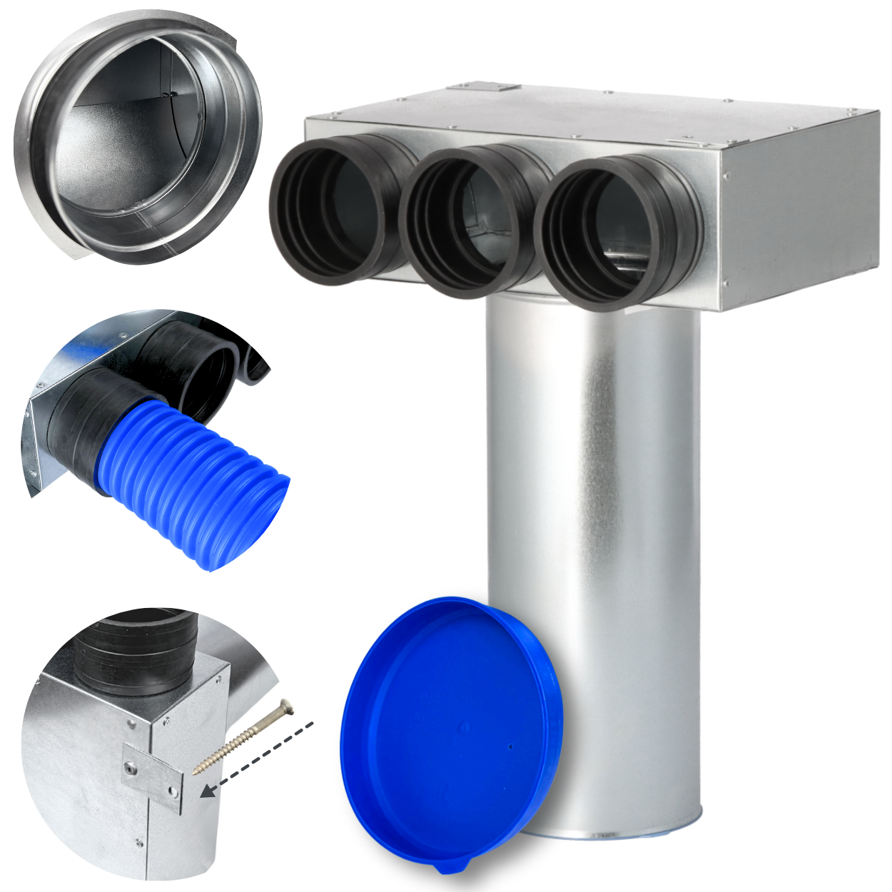 Salon – większa skrzynka z kilkoma wyjściami, aby równomiernie rozprowadzić powietrze.