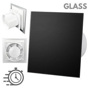 Wentylator łazienkowy dRim fi125 (TS) + FRONT SZKŁO Czarny połysk