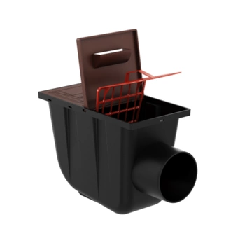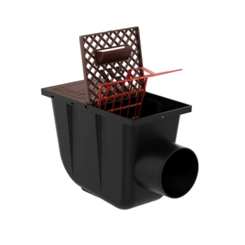 Osadnik Rynnowy Boczny BRĄZOWY do Rur Kwadratowych z kratką rewizyjną fi110
