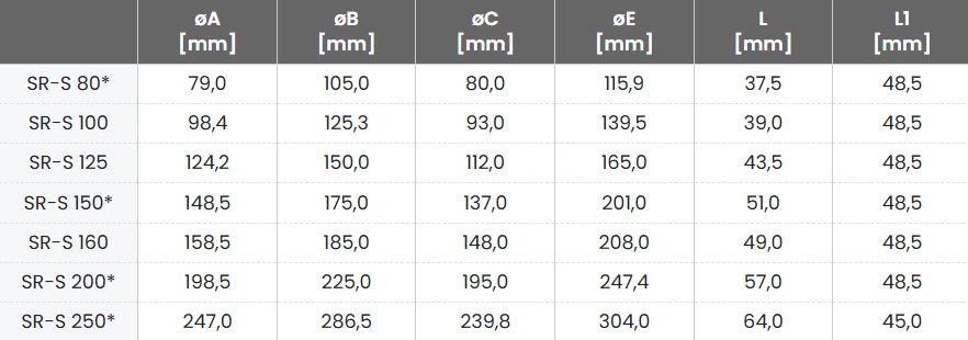 • Dostępne średnice: 80, 100, 125, 150, 160, 200, 250 [mm]