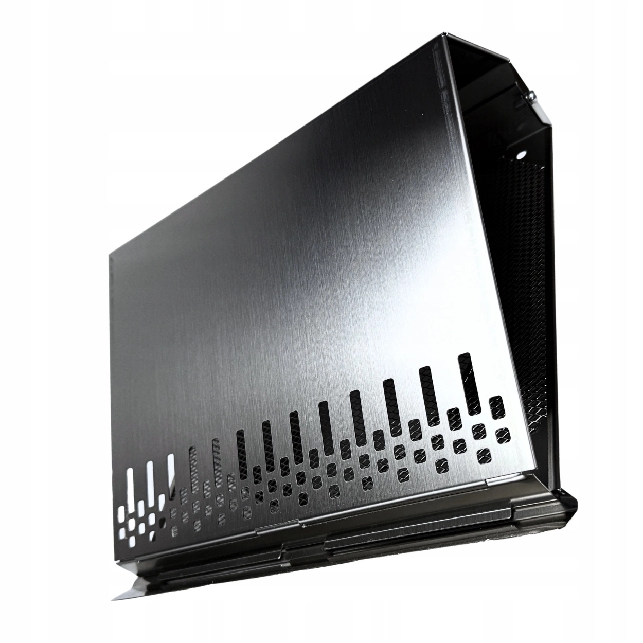 Gumowa uszczelka dwuwargowa ułatwia montaż i zabezpiecza przed przeciekaniem wody. Cztery otwory montażowe w narożnikach pozwalają na stabilne przykręcenie czerpni do ściany, a boczne wkręty frontu umożliwiają szybki demontaż do czyszczenia lub konserwacji.