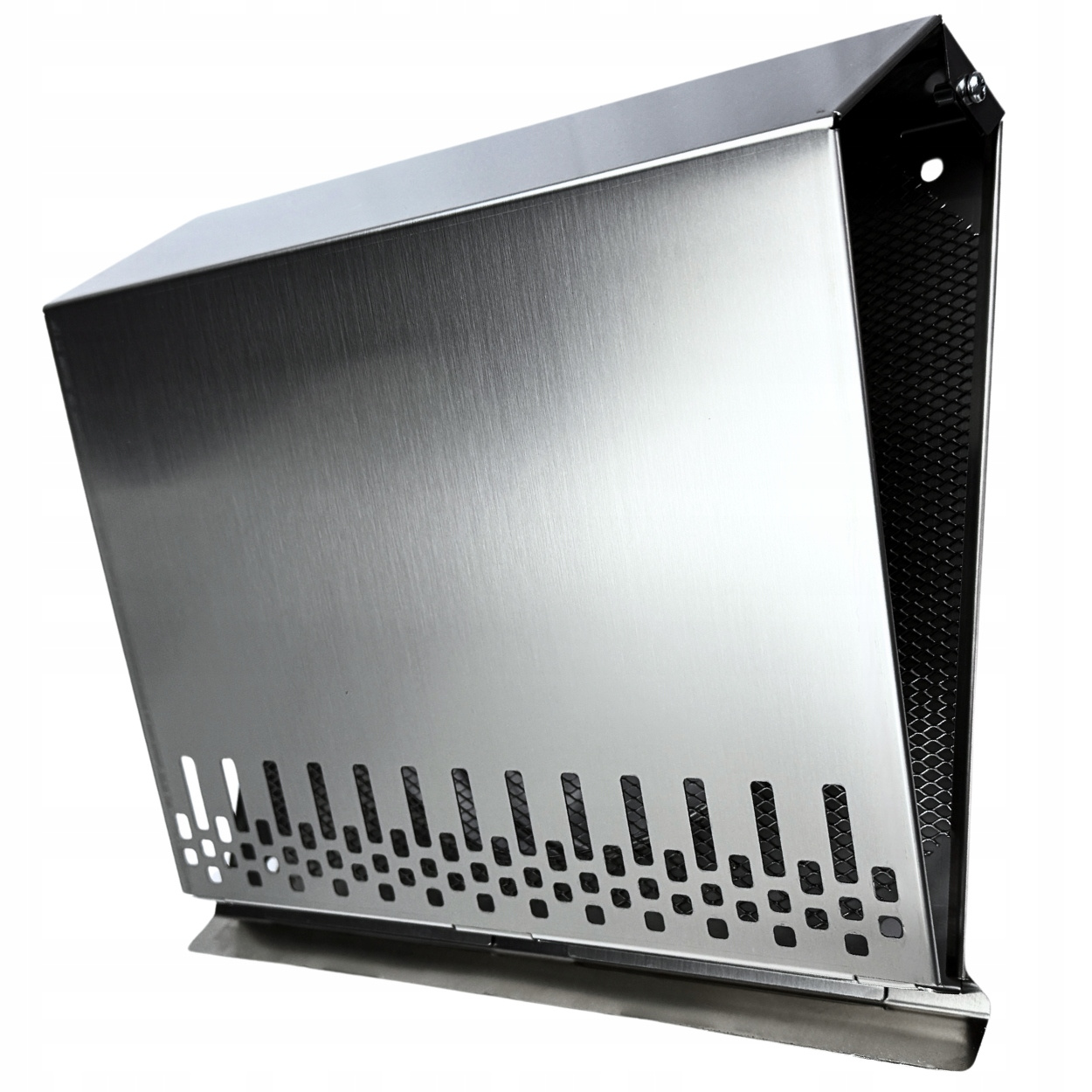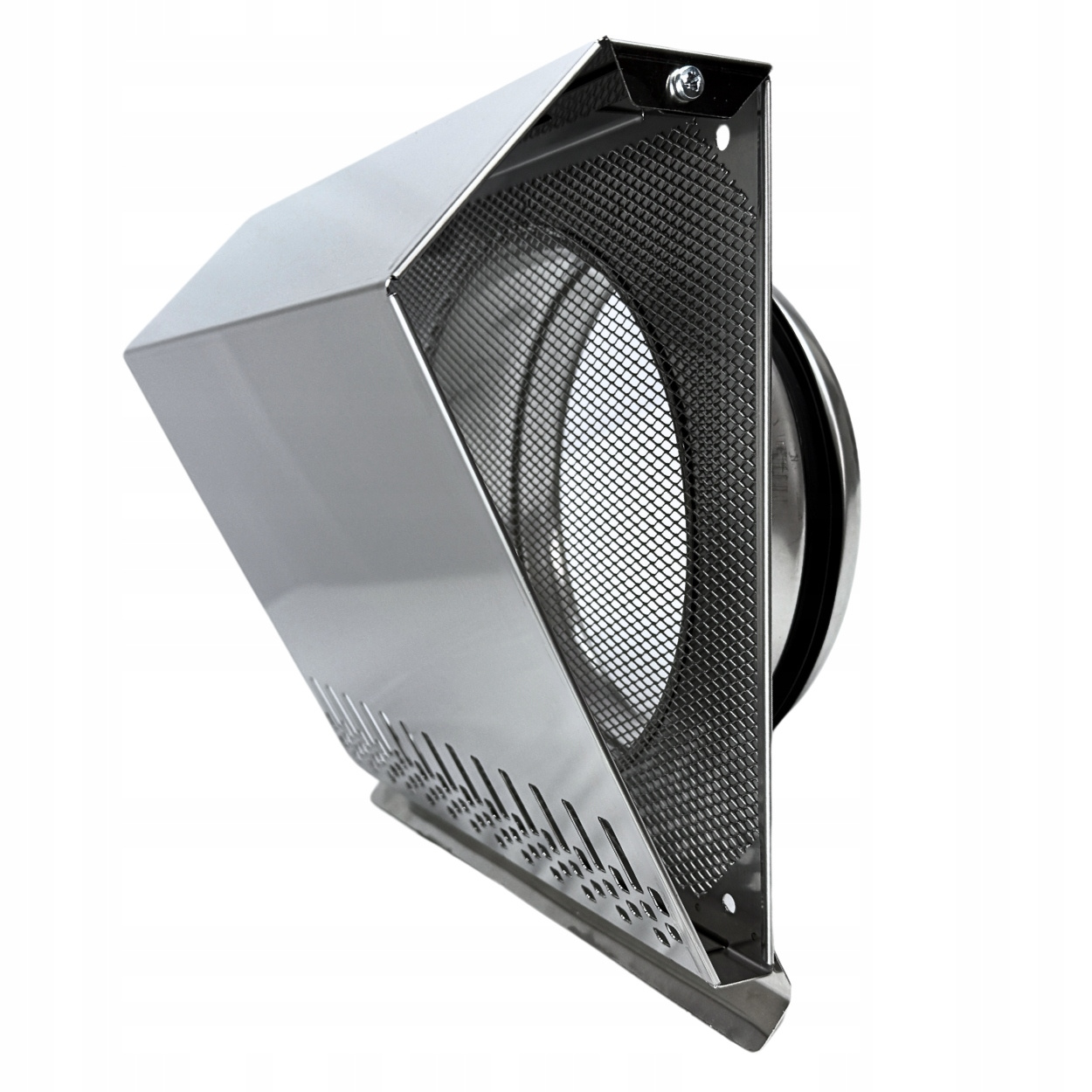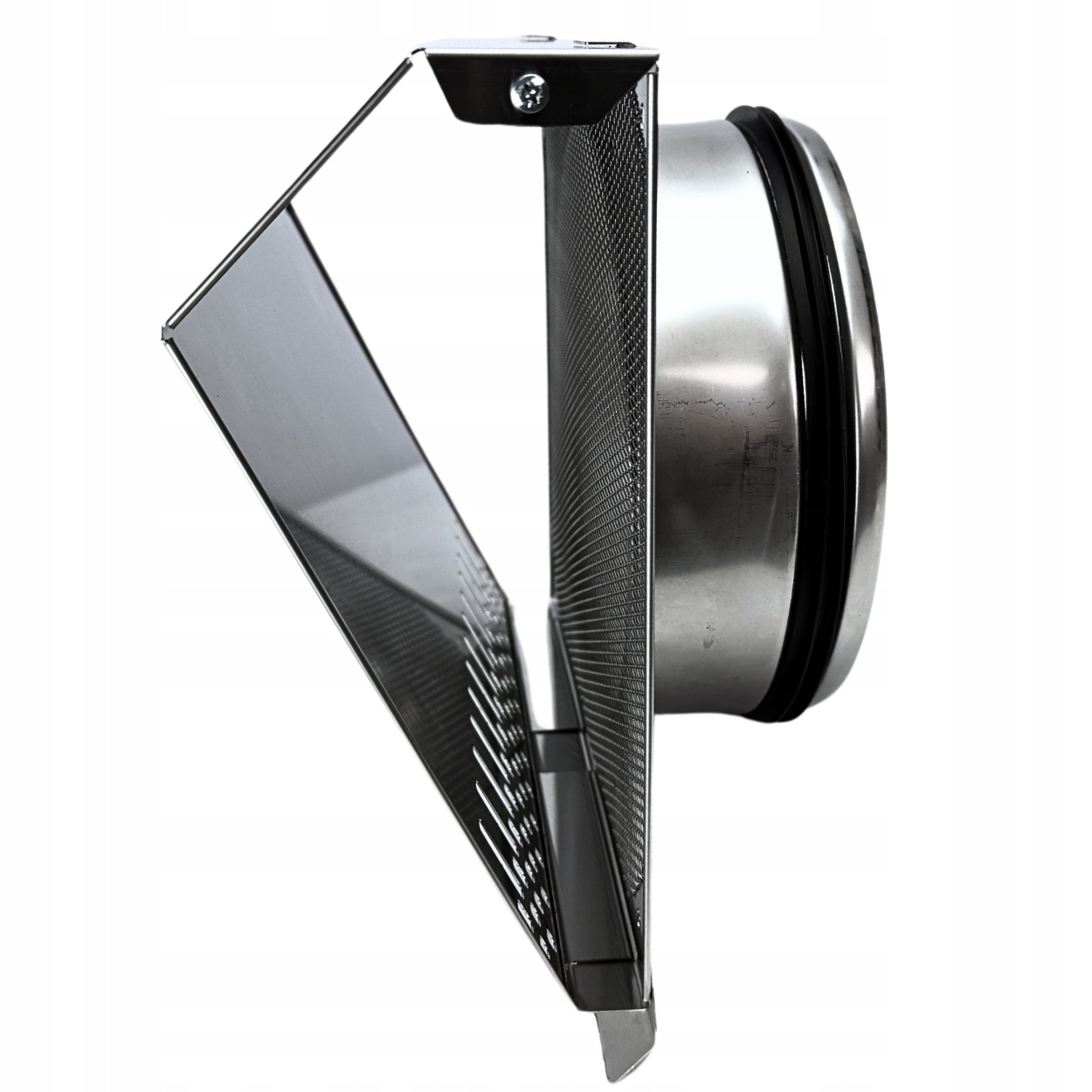 Standardowo wyposażona w okapnik chroniący ścianę przez powstawaniem zacieków oraz siatkę zabezpieczającą otwór wlotowy.
