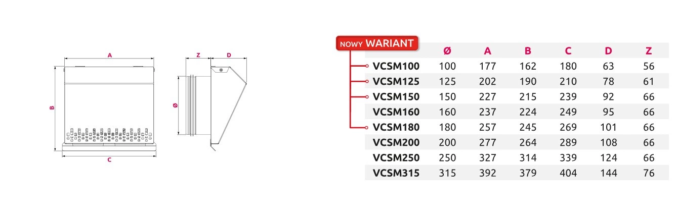 Zakończenia kanałów w systemach wentylacji mechanicznych z rekuperacją. Do zastosowania zewnętrznego, w budynkach mieszkalnych i użyteczności publicznej.