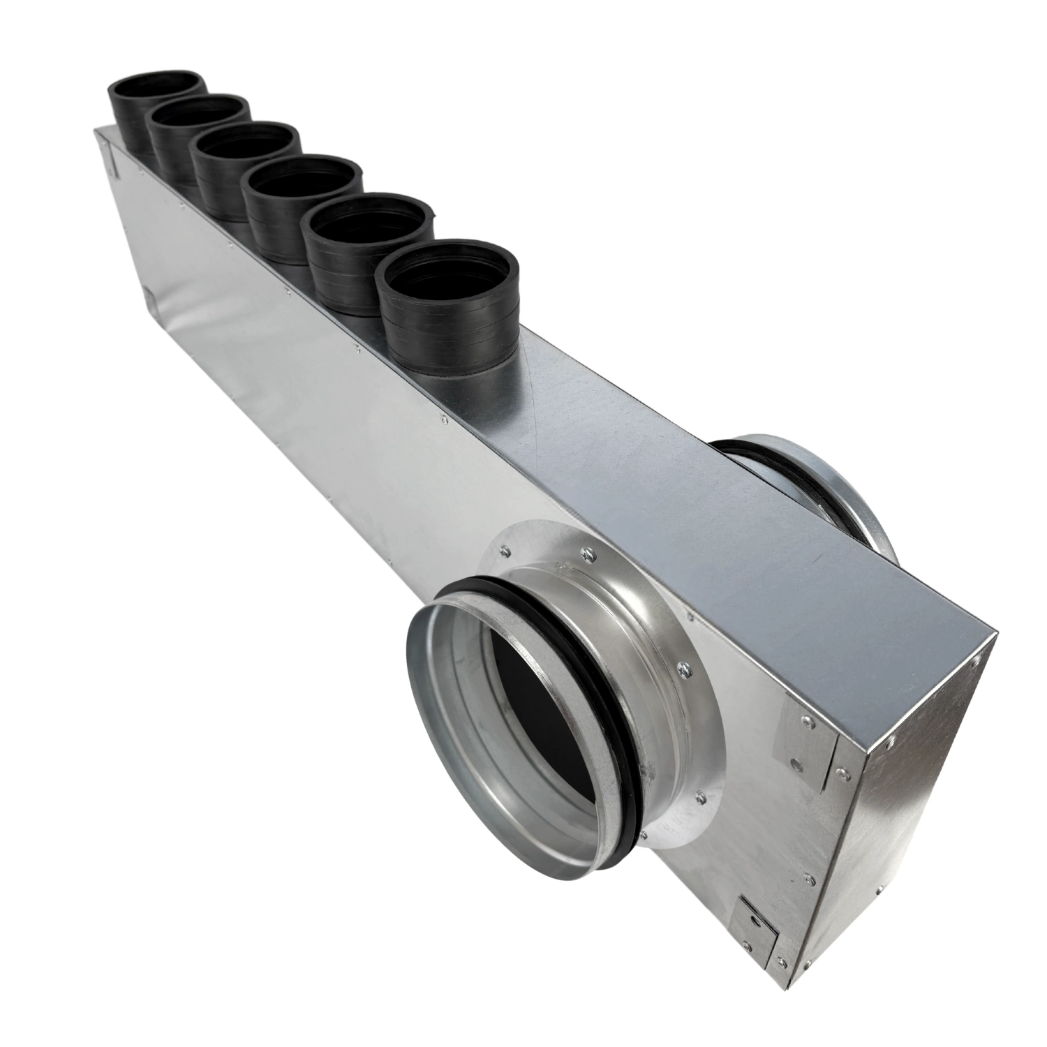 - Montaż: przykręcany do rozdzielacza; wtyk do kanału okrągłego Ø160