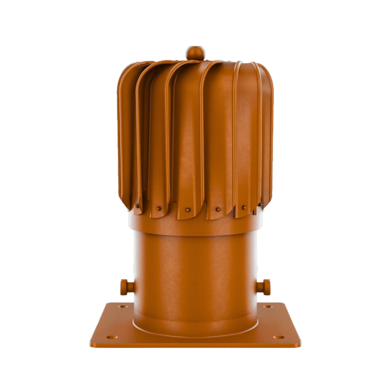 Nasada kominowa obrotowa fi150 w kolorze ceglastym (RAL 8004) to profesjonalne zakończenie przewodu wentylacyjnego, które wspomaga prawidłowy ciąg powietrza i chroni instalację przed cofnięciem się powietrza (ciągiem wstecznym). Doskonale sprawdza się zarówno w długich, jak i krótkich kominach wentylacyjnych.
