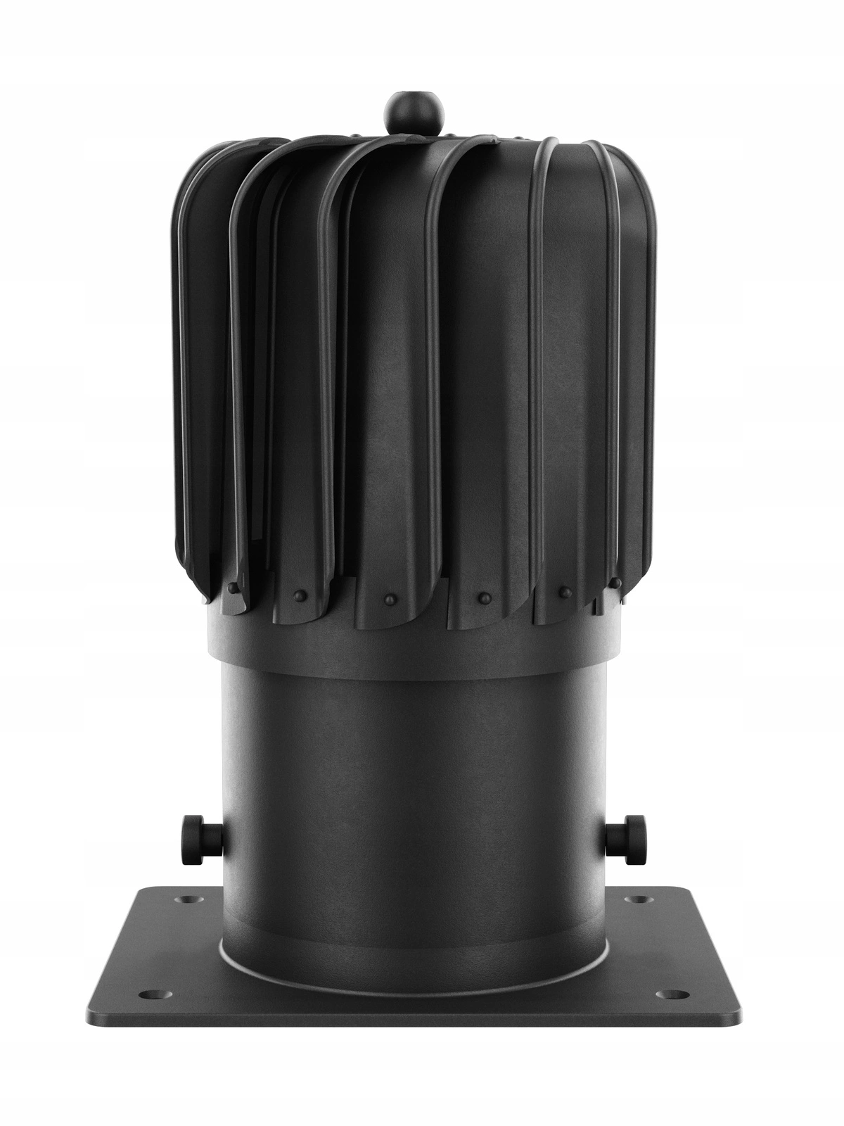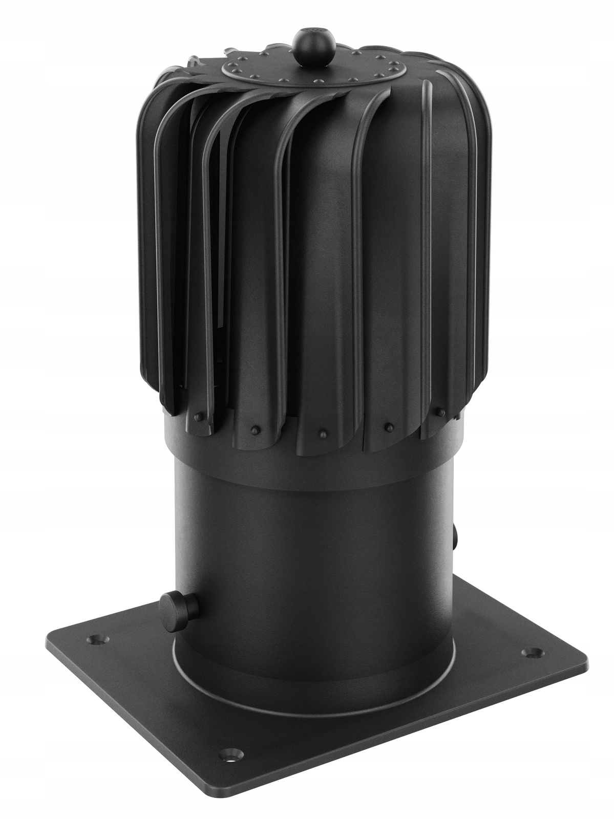 Nasada kominowa obrotowa fi150 w kolorze czarnym (RAL 9005) to profesjonalne zakończenie przewodu wentylacyjnego, które wspomaga prawidłowy ciąg powietrza i chroni instalację przed cofnięciem się powietrza (ciągiem wstecznym). Doskonale sprawdza się zarówno w długich, jak i krótkich kominach wentylacyjnych.