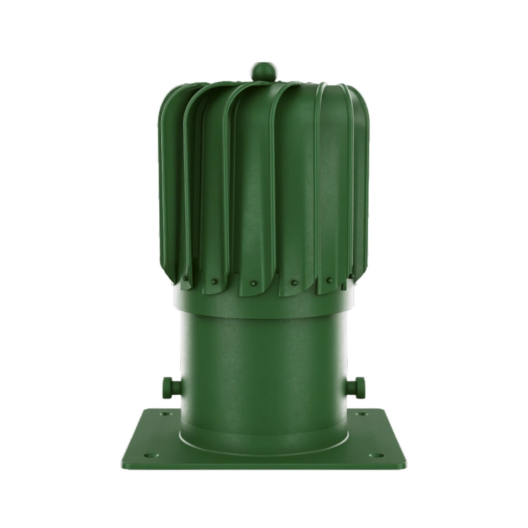 Nasada kominowa obrotowa fi150 w kolorze zielonym (RAL 6020) to profesjonalne zakończenie przewodu wentylacyjnego, które wspomaga prawidłowy ciąg powietrza i chroni instalację przed cofnięciem się powietrza (ciągiem wstecznym). Doskonale sprawdza się zarówno w długich, jak i krótkich kominach wentylacyjnych.