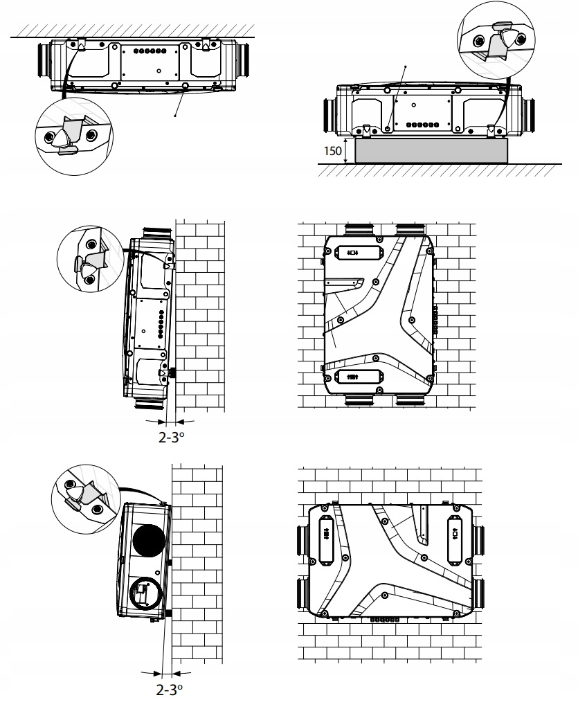 Centrale Reneo D 240 przeznaczone są do montażu sufitowego (podwieszanego), podłogowego i ściennego. W trakcie instalacji należy zapewnić łatwy dostęp do urządzenia w celu konserwacji i wymiany filtrów.