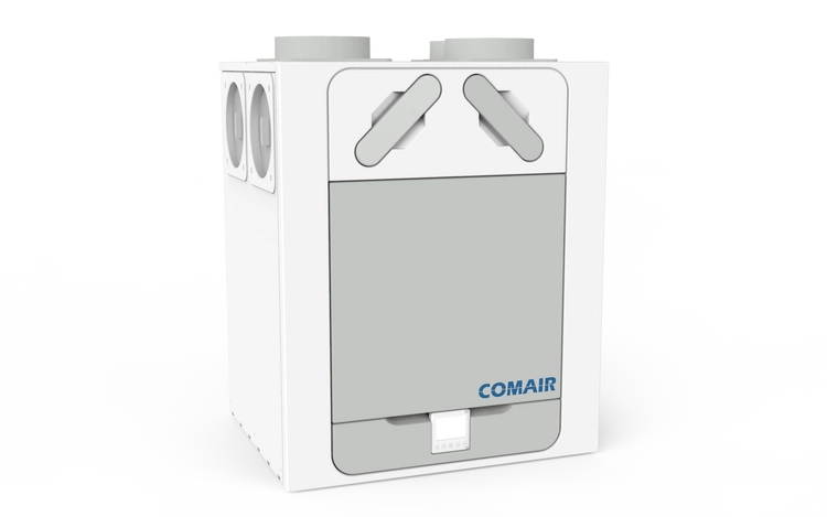 Centrala wentylacyjna Comair HRUC-PRO E4 to nowoczesny system mechanicznej wentylacji z odzyskiem ciepła (MVHR), przeznaczony do domów jednorodzinnych oraz obiektów mieszkalnych o podobnym charakterze. Urządzenie zapewnia stały dopływ świeżego powietrza do salonu, sypialni czy gabinetu, jednocześnie skutecznie usuwając zużyte powietrze z kuchni, łazienek i pomieszczeń technicznych. Dzięki wysokiej sprawności odzysku ciepła i energooszczędnym wentylatorom EC, HRUC-PRO E4 znacząco ogranicza koszty ogrzewania, gwarantując jednocześnie komfort i zdrowy mikroklimat w domu.