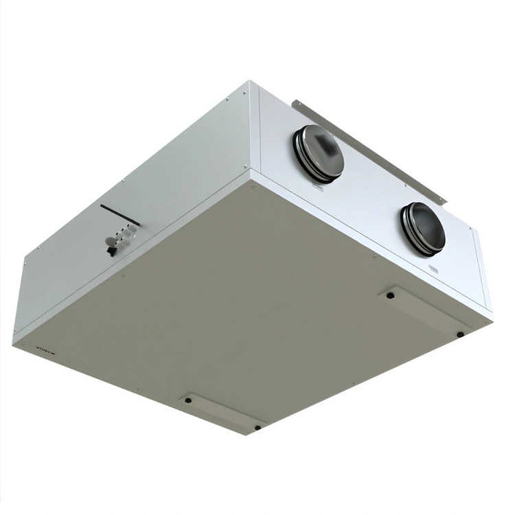 Za ruch powietrza odpowiadają wentylatory z nowoczesnymi silnikami EC z zewnętrznym wirnikiem i łopatkami zagiętymi do tyłu. Zintegrowana elektronika silników pozwala na płynną regulację prędkości obrotowej, dzięki czemu można dokładnie dopasować wydajność centrali do aktualnego zapotrzebowania na powietrze. Silniki EC charakteryzują się bardzo wysoką sprawnością (nawet do ok. 90%), co przekłada się na niższy pobór prądu i cichą pracę.