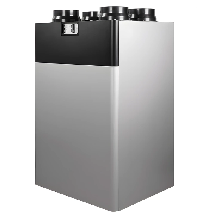 Rekuperator VERTIC ENTHALPY to pionowa centrala wentylacyjna z wymiennikiem entalpicznym, zaprojektowana do efektywnej wentylacji mechanicznej z odzyskiem ciepła i wilgoci w mieszkaniach, domach oraz lokalach usługowych. Dzięki kompaktowej, stojącej konstrukcji idealnie sprawdza się tam, gdzie nie ma miejsca na standardowy montaż sufitowy – na podłodze, na ścianie, nad pralką czy w zabudowie pod schodami.