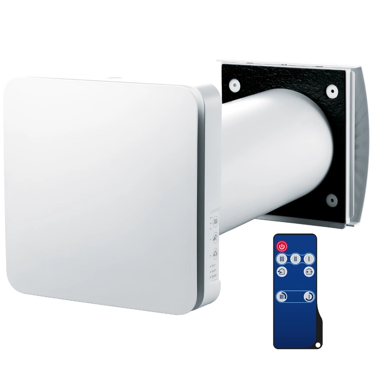 BLAUBERG VENTO inHome Wi-Fi to nowoczesny system wentylacji decentralnej dedykowany do pojedynczych pomieszczeń w nowych i modernizowanych budynkach. Urządzenie łączy wysoką efektywność energetyczną z komfortem sterowania za pomocą smartfona, pilota lub dotykowego panela, oferując jednocześnie cichą pracę i skuteczną filtrację powietrza.