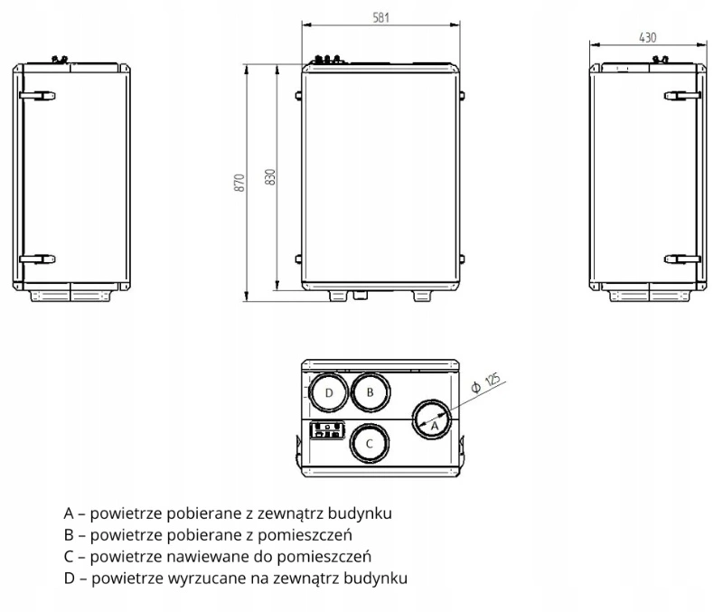 Rekuperator WANAS BLACK 300V XF to nowoczesna centrala wentylacyjna o wydajności 300 m³/h, przeznaczona do wentylacji pomieszczeń o powierzchni do 149 m². Uniwersalna, dwustronna konstrukcja oraz korpus w całości wykonany ze spienionego polipropylenu (EPP) zapewniają doskonałą izolację termiczną i akustyczną, wysoką trwałość oraz niską masę. Montaż na stojaku umożliwia łatwe ustawienie w kotłowni lub pomieszczeniu technicznym.