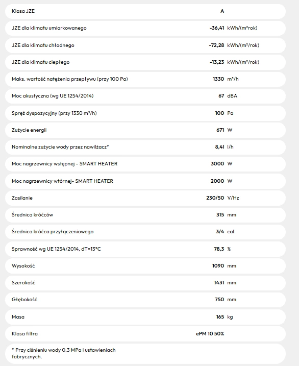 - Cztery funkcje w jednym urządzeniu: wentylacja, nawilżanie, ogrzewanie i chłodzenie