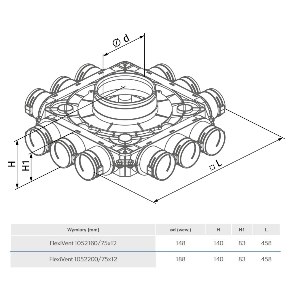 Rozdzielacz wentylacyjny 12x75/160 REKUPERACJA 75