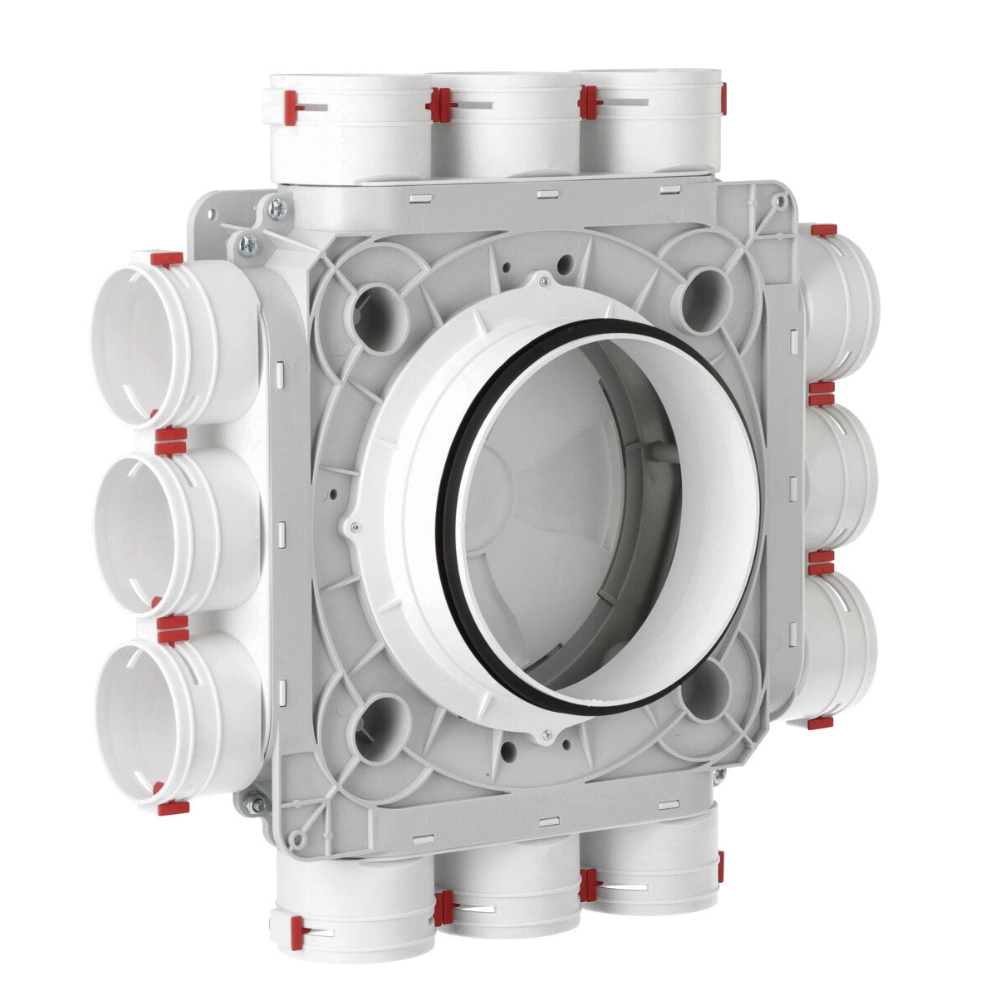 Rozdzielacz 12x75/160 mm to niezawodny element systemu rekuperacji, zaprojektowany do współpracy z najpopularniejszymi systemami rozdzielaczowymi opartymi na rurach karbowanych Ø75. Umożliwia sprawne i szczelne rozprowadzanie powietrza w instalacjach nawiewno-wywiewnych, zapewniając wysoką wydajność i trwałość systemu.