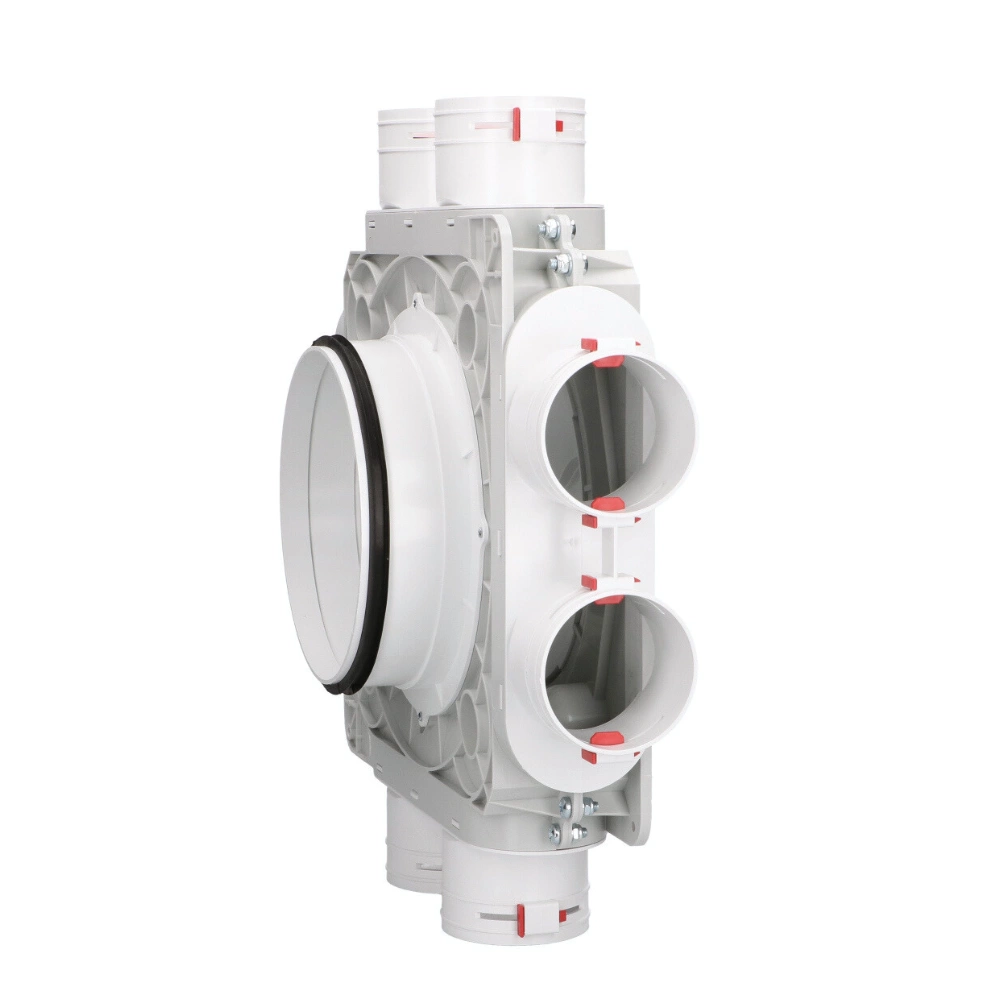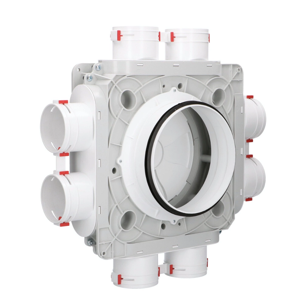 Rozdzielacz 8-króćcowy 8xØ75/200 mm to solidny element systemu wentylacyjnego, przeznaczony do współpracy z najpopularniejszymi systemami rozdzielaczowymi opartymi na karbowanej rurze Ø75. Zapewnia sprawne i szczelne rozprowadzanie powietrza w instalacjach nawiewno-wywiewnych z rekuperacją.