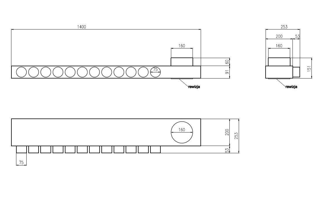 Rozdzielacz wentylacyjny skrzynka rozdzielcza 12x75 fi 160 REKUPERACJA fi75