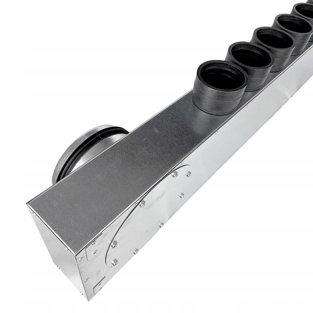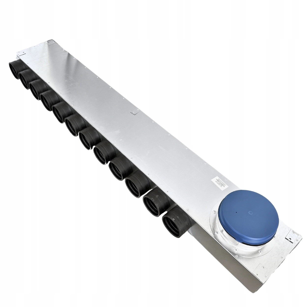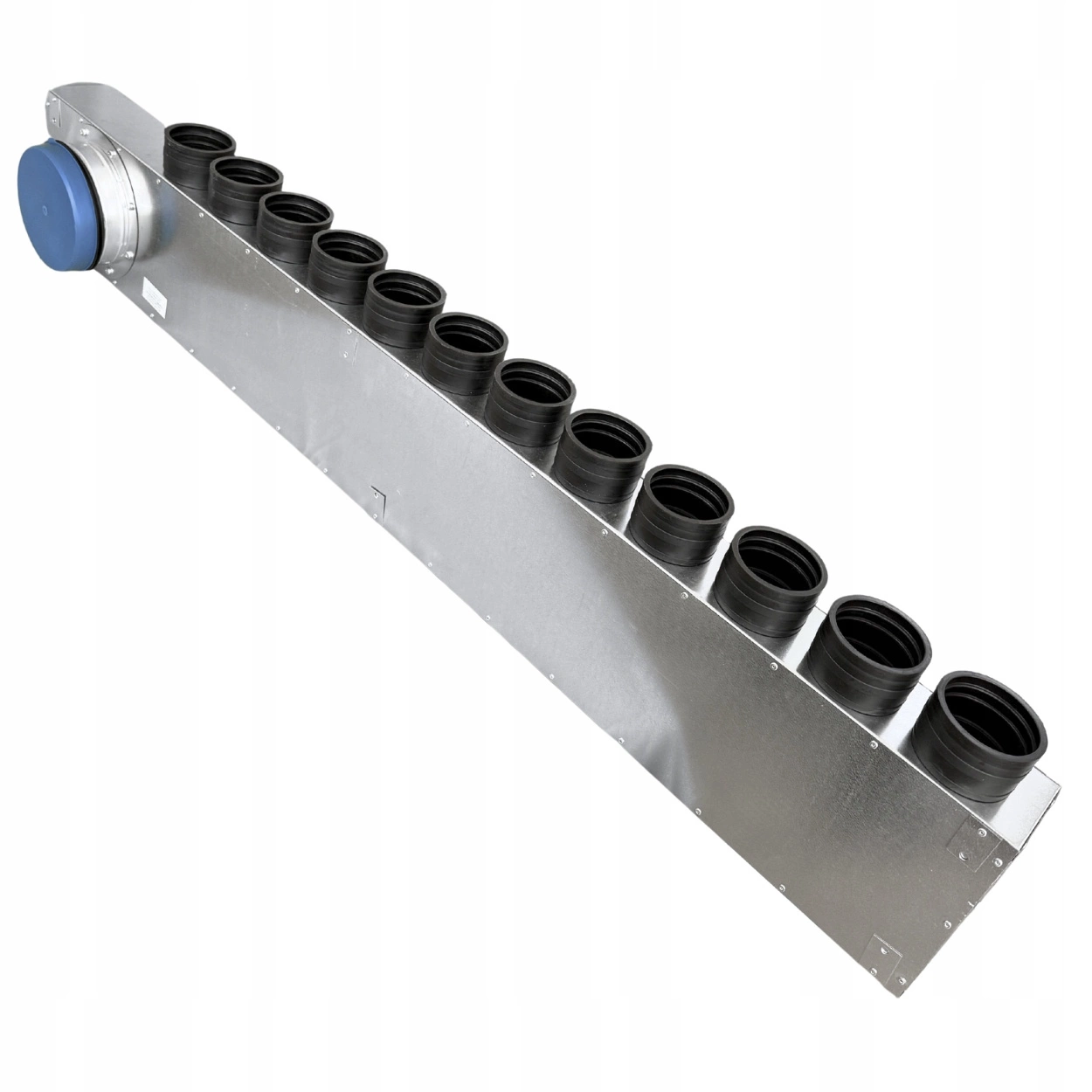 Rozdzielacz rurowy 12-króćcowy 12×75 mm / Ø200 mm z rewizją i przekładanym króćcem – tłumiący, ocynkowany, samouszczelniający