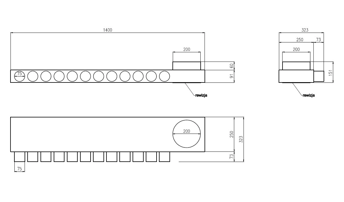 Rozdzielacz wentylacyjny skrzynka rozdzielcza 12x75 fi 200 REKUPERACJA fi75