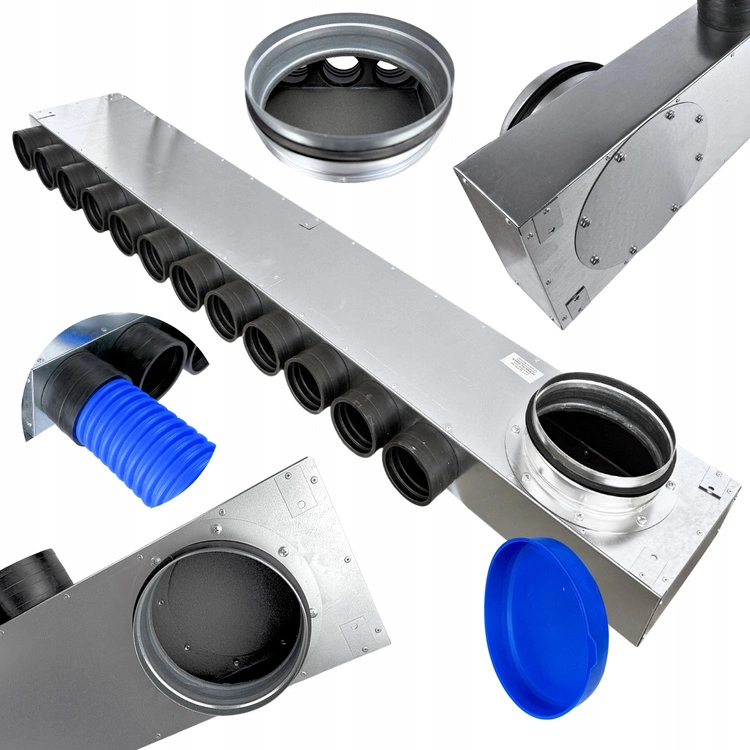 Rozdzielacz rurowy nawiewno–wyciągowy 12×75 mm z przyłączem Ø200 mm to niezawodny element systemu wentylacyjnego, stworzony z myślą o instalacjach opartych na popularnych rurach karbowanych Ø75 mm. Solidna konstrukcja, wysoka szczelność i zastosowanie nowoczesnych rozwiązań gwarantują efektywną i cichą pracę systemu rekuperacyjnego.