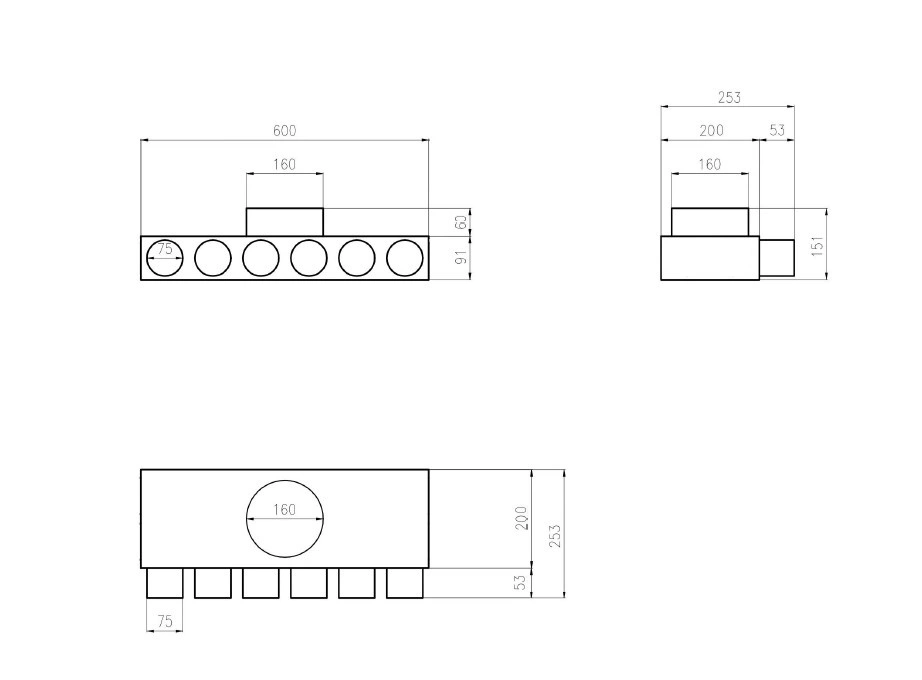 Rozdzielacz wentylacyjny skrzynka rozdzielcza 6x75 fi 160 REKUPERACJA fi75
