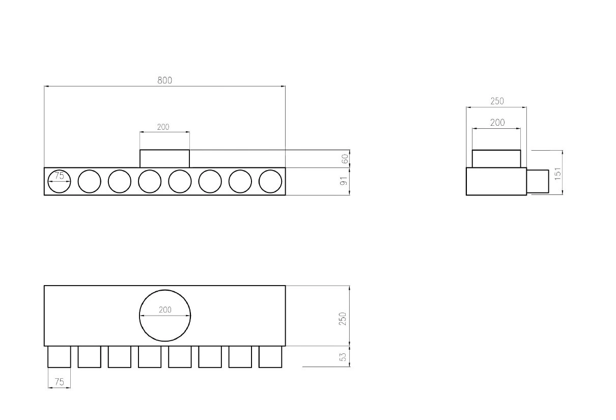 Rozdzielacz wentylacyjny skrzynka rozdzielcza 8x75 fi 200 REKUPERACJA fi75