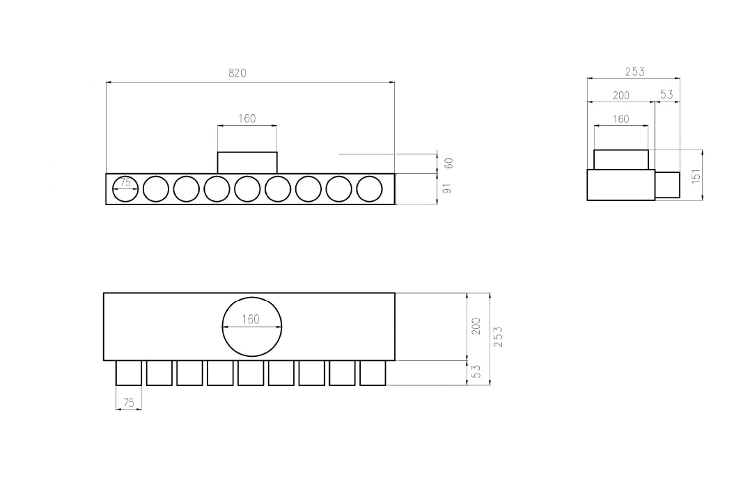 Rozdzielacz wentylacyjny skrzynka rozdzielcza 9x75 fi 160 REKUPERACJA fi75