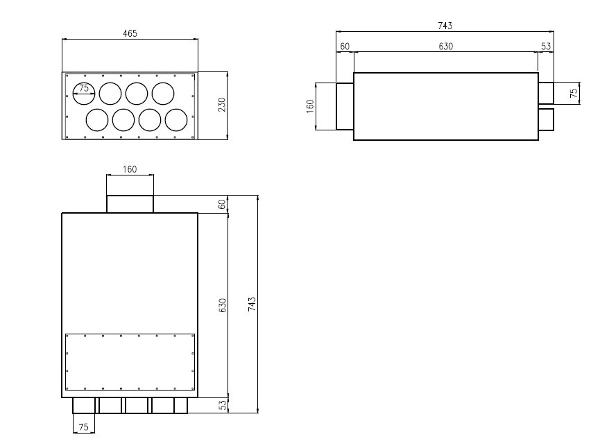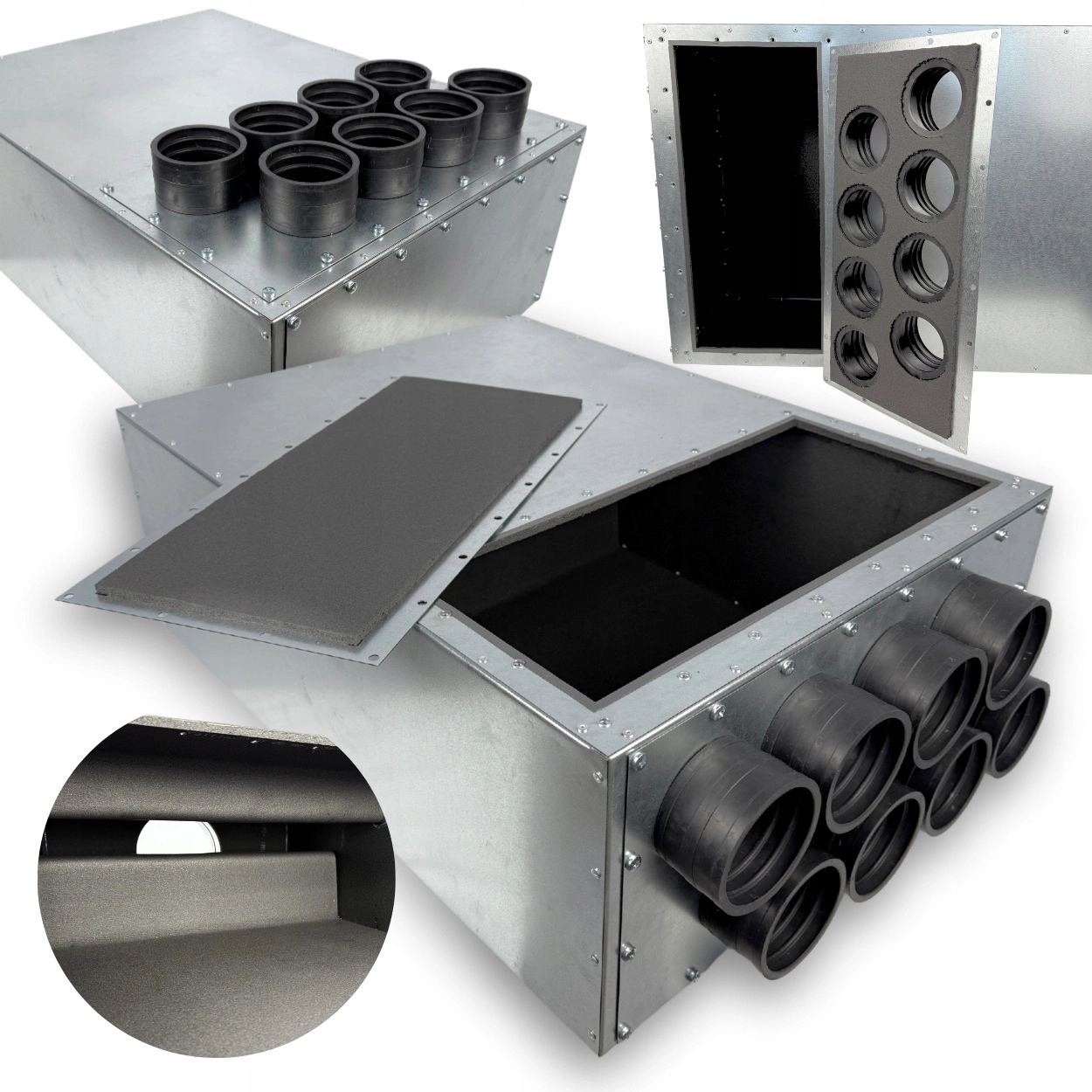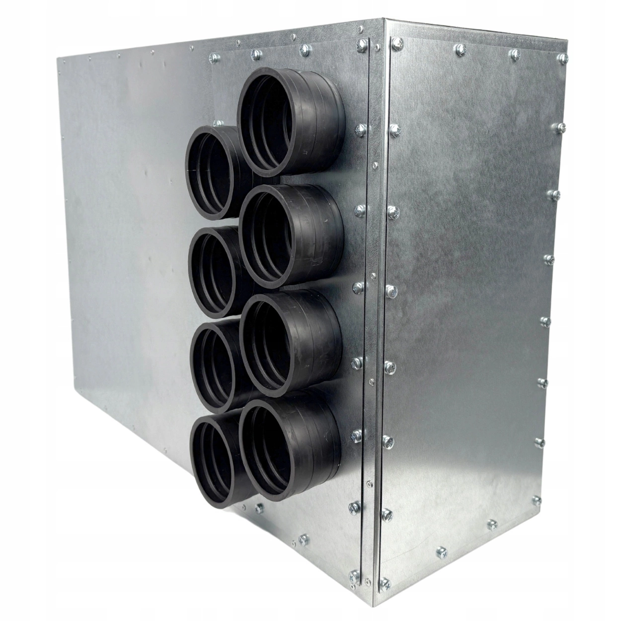 Rozdzielacz wentylacyjny 8x75/160 – przekładany front, tłumiący, ocynkowany