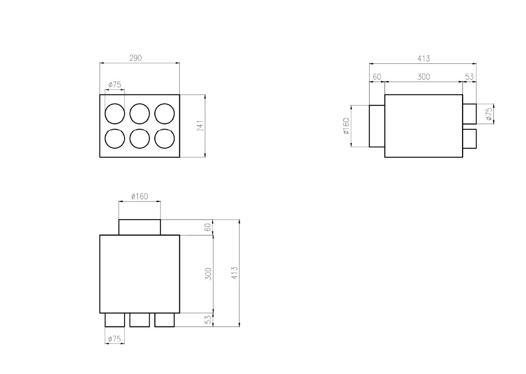 Wyjścia: 6 × Ø 75 mm
