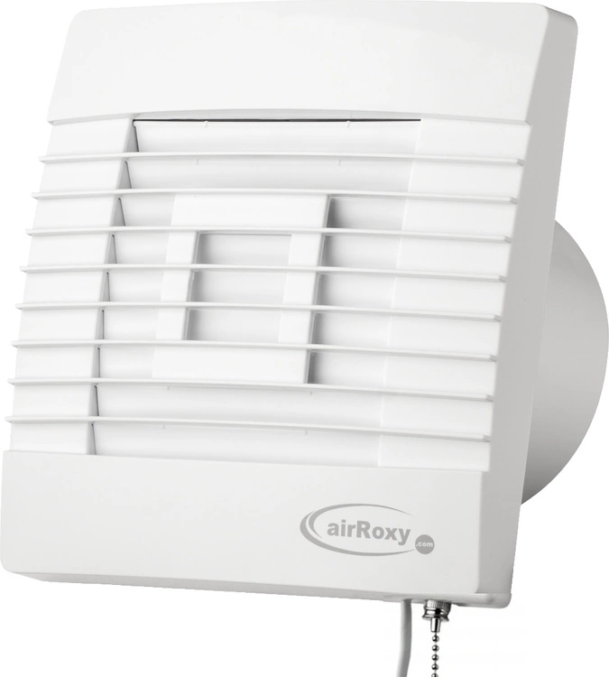 Wyjątkowo cichy wentylator domowy airRoxy pRestige 150 ZG z rodziny pRestige w kolorze białym, wyposażony w wysokiej klasy łożysko ślizgowe i żaluzje grawitacyjne. Geometryczny front z lamelami otwierającymi się do środka zapewnia jednokierunkowy przepływ powietrza (tylko wyciąg), skutecznie chroniąc przed cofkami – zimnym powietrzem i zanieczyszczeniami z zewnątrz.