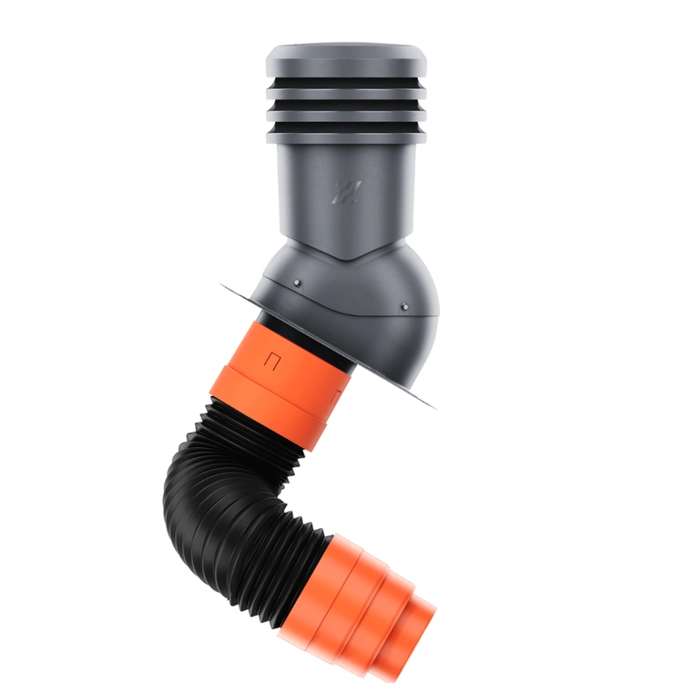 Profesjonalny zestaw wentylacyjny łączący izolowany kominek EcoLine Plus ⌀200 mm z rurą przyłączeniową z redukcją na ⌀160 mm. Dzięki temu średnica wyjściowa całego systemu wynosi ⌀160 mm, co zapewnia idealną kompatybilność z najpopularniejszymi kanałami wentylacyjnymi. Zestaw jest przeznaczony do montażu na nowo tworzonych dachach krytych papą lub gontem, a jego izolowana konstrukcja zapobiega kondensacji pary wodnej. Kolor RAL 7016 (grafit/antracyt) doskonale komponuje się z nowoczesnymi pokryciami. Po odpowiedniej obróbce podstawy, kominek można zamontować również pod dachówkę.