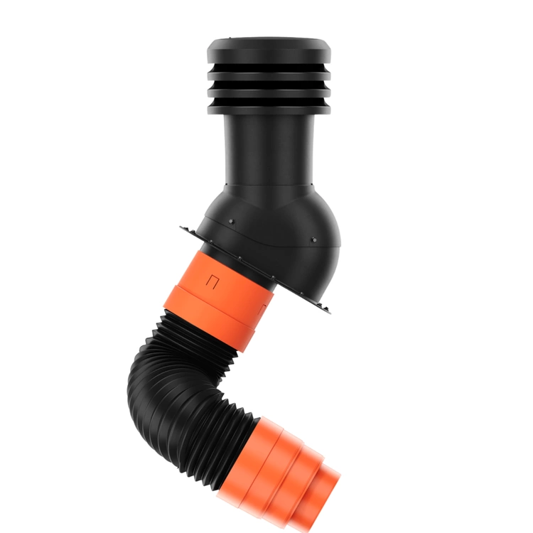 Profesjonalny zestaw wentylacyjny łączący kominek EcoLine Plus ⌀ 200 mm z rurą przyłączeniową z redukcją na ⌀ 160 mm. Dzięki temu rozwiązaniu średnica wyjściowa całego systemu wynosi ⌀160 mm, co zapewnia idealną kompatybilność z kanałami wentylacyjnymi tej średnicy. Zestaw jest dedykowany do montażu na szerokiej gamie pokryć płaskich i o niskim profilu, takich jak blacha na rąbek czy blachodachówki płaskie. Dołączona do podstawy uszczelka butylowa gwarantuje hermetyczność instalacji, a kolor RAL 9005 (czarny) doskonale komponuje się z nowoczesnym budownictwem.