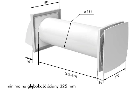 - Montaż przezścienny w ścianie zewnętrznej (Ø125 mm)