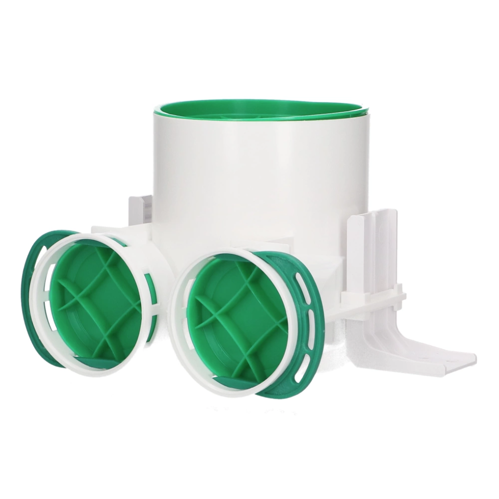 Skrzynka rozprężna VPB125-2 marki AWENTA PRO służy do podłączenia dwóch elastycznych przewodów wentylacyjnych Ø75 mm do skrzynki rozdzielczej. Umożliwia montaż anemostatu nawiewnego lub wywiewnego, zapewniając zrównoważoną wentylację w pomieszczeniach przeznaczonych do codziennego użytkowania, takich jak salony czy sypialnie.