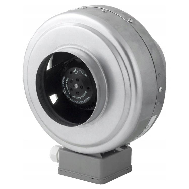 Obudowa z blachy ocynkowanej zapewnia odporność na korozję. Wyposażony w silnik indukcyjny jednofazowy z kondensatorem rozruchowym (IP44, praca ciągła S1), charakteryzujący się cichą pracą i wysoką efektywnością. Dostępny w średnicach od Ø100 do Ø315 mm, z opcją regulatora obrotów.