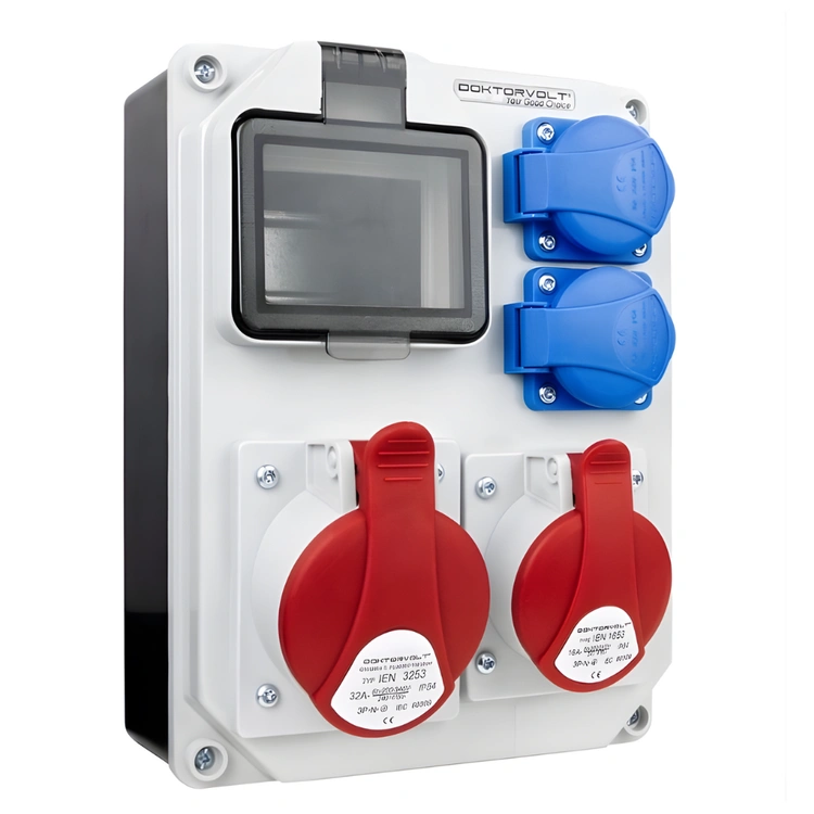 Rozdzielnica budowlana Doktorvolt DV-5330-F to kompaktowa skrzynka rozdzielcza z gniazdami siłowymi do zasilania urządzeń na placach budowy, w warsztatach i instalacjach tymczasowych. Wyposażona w 1x 400V 32A IP54, 1x 400V 16A IP54 oraz 2x 230V 16A IP54, gotowa do natychmiastowego podłączenia w systemach wentylacyjnych, klimatyzacyjnych i przemysłowych.